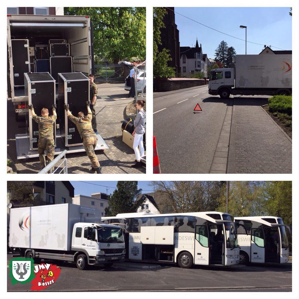 Das Musikkorps der Bundeswehr ist soeben in der Stadthalle in Montabaur angekommen. Nun wird alles aufgebaut und im Anschluss gibt es noch eine kurze Anspielprobe. Einlass ist heute Abend um 18:30 Uhr, Beginn um 19:30 Uhr. Es gibt noch Tickets an der Abendkasse.