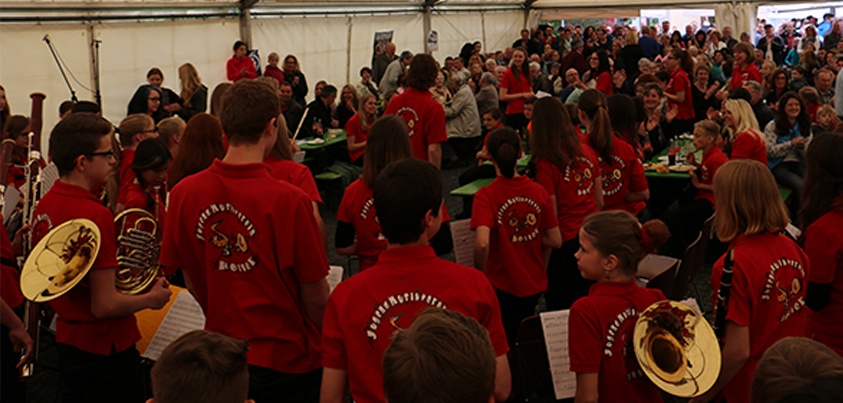 Inzwischen hatten die Jugendorchester des Jugendmusikvereins die musikalische Gestaltung des Nachmittags übernommen. Es spielten für Sie das Vororchester unter der Leitung von Stephan Müller, das Ausbildungsorchester, das von Stefan Weidenfeller und unseren C1-Absolventinnen Jana Kaulbach, Franziska Tophofen und Lena Quernes dirigiert wurde sowie das Jugendorchester mit seiner neuen Dirigentin Carolin Arndt.