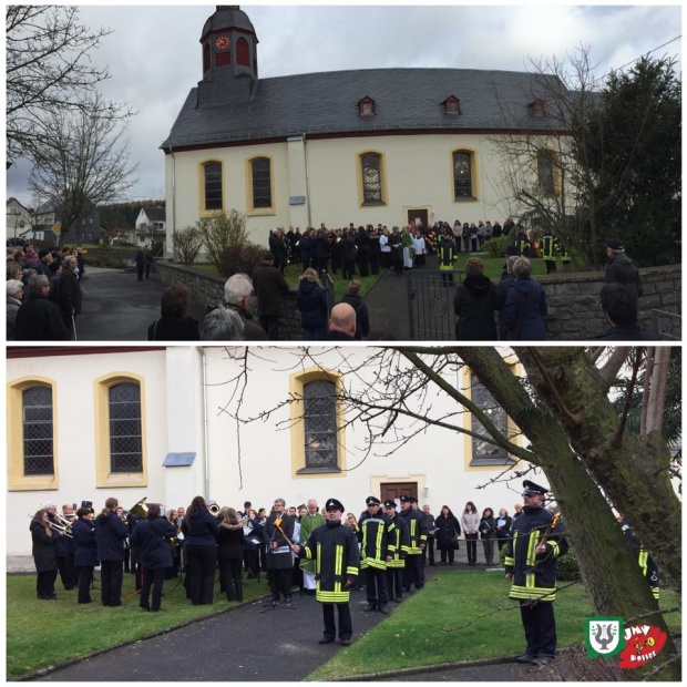 Der Musikverein Holler unterstützt die Feier vor der Kirche musikalisch und bringt so seine Anteilnahme zum Ausdruck.