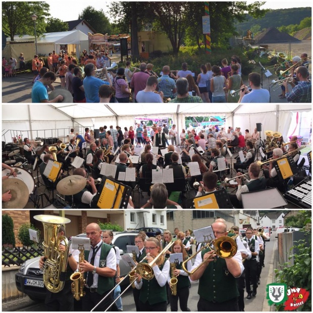 Dieses Wochenende wird in Holler Kirmes gefeiert. Nachdem wir die große Kirmesjugend bereits am Freitag musikalisch bei ihrem ersten Tanz unter dem Kirmesbaum unterstützt haben, haben wir gerade den Umzug durch Holler begleitet. Jetzt unterhalten wir die Gäste bei Kaffee und Kuchen mit einem Platzkonzert.