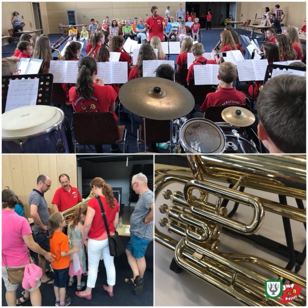 Unter fachmännischer Vorführung des Ausbildungsorchesters präsentierten sich den neugierigen Kindern und ihren Familien zunächst die Instrumente des Blasorchesters, die danach alle selbst ausprobiert werden durften.