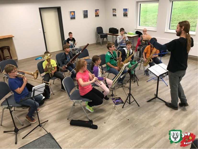 Heute Nachmittag fand unter der bewährten Leitung von Stefan Weidenfeller die erste Probe unserer neuen Bläserklasse statt. In diesem Jahr haben sich 12 musizierfreudige Kinder gefunden, die vom ersten Ton an in einer Gruppe Musik machen wollen.