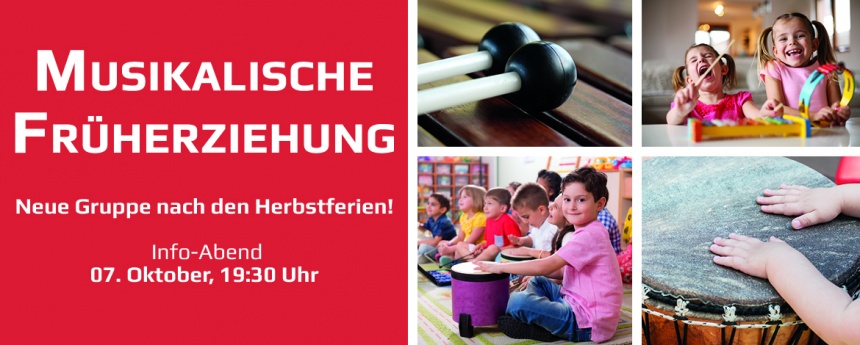 Nach den Herbstferien möchten wir wieder eine neue Früherziehungsgruppe für alle 4- bis 6-jährigen musikinteressierten Kinder anbieten. Diese wird immer freitags von 15:30 Uhr bis 16:30 Uhr in den Räumlichkeiten der Sport- und Kulturhalle Holler stattfinden.