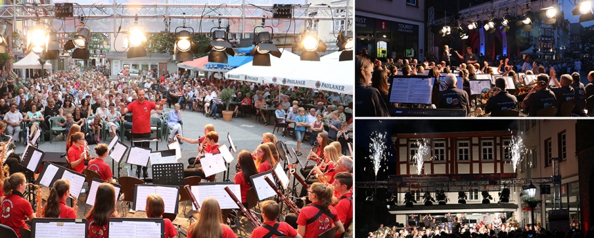 Wenn an einem warmen Sommerabend langsam die Sonne untergeht, das Montabaurer Rathaus farbenfroh illuminiert wird, Passanten sich schnell noch einen Sitzplatz ergattern und sinfonische Klänge die Altstadt erfüllen, dann hat das Sommer Open Air des Musikvereins Holler stattgefunden.