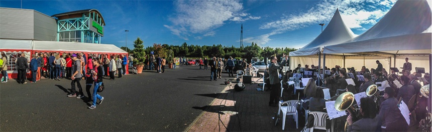 Jedes Jahr im September lädt die Firma "Knauber" im Industriegebiet Heiligenroth zum verkaufsoffenen Sonntag ein und auch dieses Mal war der Musikverein Holler mit dabei. Drei Stunden lang unterhielten wir heute bei bestem Spätsommerwetter die vielen Kunden, die die Kombination aus warmen Sonnenstrahlen, einladenden Shoppingangeboten und guter Musik genießen wollten.