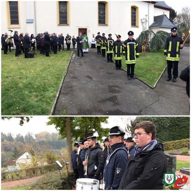 Als Musik- und Ortsverein ist es für uns eine Selbstverständlichkeit, die Feierlichkeit anlässlich des Volkstrauertags, zu der sich heute Morgen viele Hollerer Bürger vor der Dorfkirche gemeinsam mit Pfarrer Westermann und Ortsbürgermeister Uwe Meyer eingefunden hatten, musikalisch zu umrahmen. Auch in Niederelbert gedachte man den Opfern von Krieg, Vertreibung und Terror. Hier trug eine kleine Besetzung unseres Orchesters zu der Gestaltung der Gedenkfeier bei.