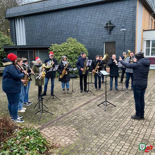 Anlässlich des 4. Advents hat sich am Sonntagnachmittag eine kleine Bläserbesetzung am Horbacher Ignatius-Lötschert-Haus getroffen, um den Bewohner:innen musikalische Weihnachtsgrüße zu überbringen.