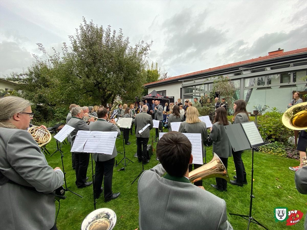 Gestern Nachmittag stand ein Überraschungsauftritt an: Unser ältestes aktives Mitglied feierte seinen 75. Geburtstag und gleichzeitig das Jubiläum der Goldenen Hochzeit. Absolute Ehrensache, dass wir zu dieser Gelegenheit ein Ständchen spielen und unsere Glückwünsche persönlich überbringen.
