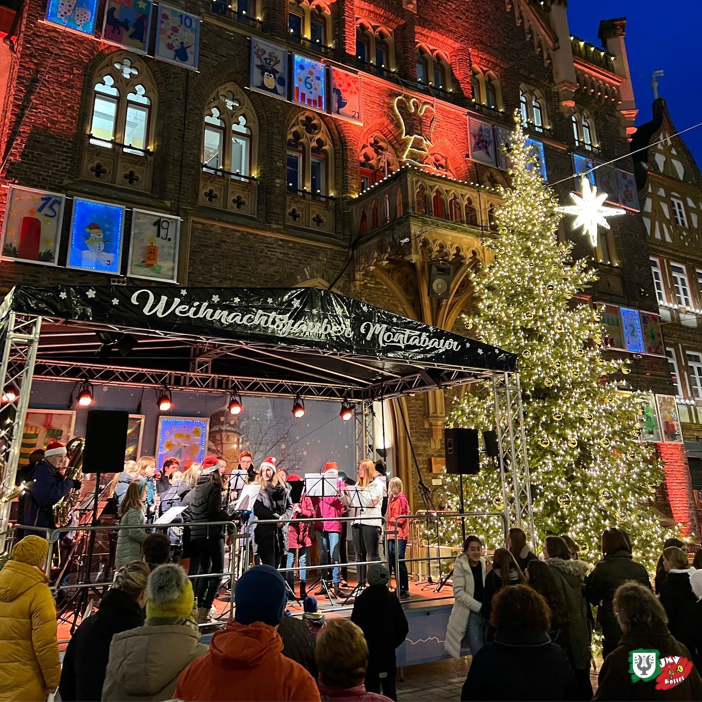 „Alle Jahre wieder...“ gibt es in Montabaur am historischen Rathaus einen Adventskalender. Heute haben die Musiker:innen unseres Vororchesters das Öffnen des Adventsfensters musikalisch mit Weihnachtsliedern umrahmt.