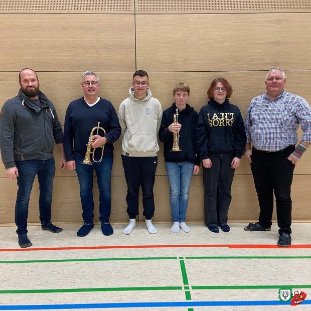 Das Trompetenregister war vor kurzem zu Besuch im Musikhaus Martin in Runkel. Dort haben sie ausgiebig verschiedene Flügelhörner getestet. Anschließend sind sie mit zwei Flügelhörnern, inklusive passendem Zubehör in Form von Koffer und Instrumentenständer, nach Holler zurückgekehrt.