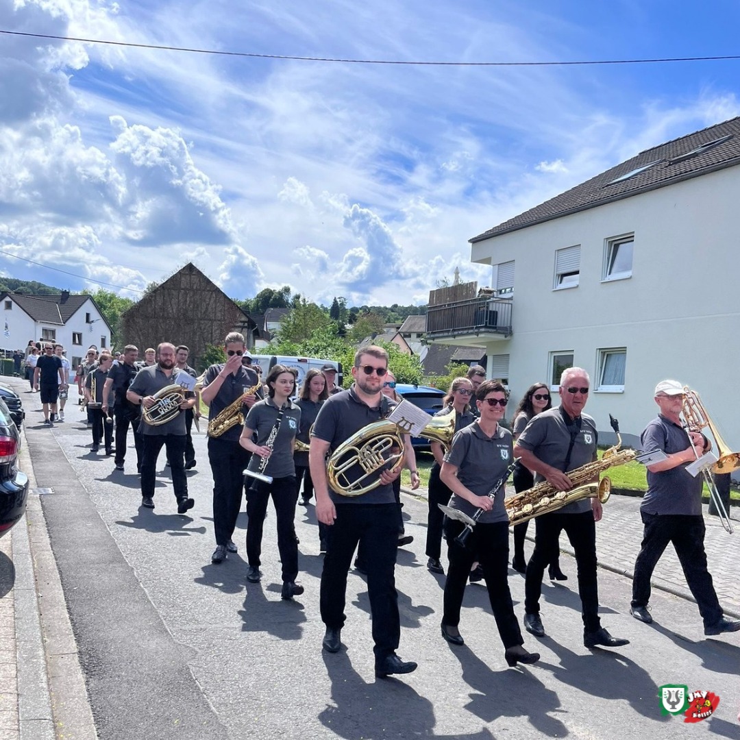 Vergangenes Wochenende war Kirmes in Holler und passend dazu hat sich auch endlich mal die Sonne gezeigt. Natürlich waren wir musikalisch dabei: vom Kirmesbaumstellen über den Umzug bis hin zu unserem Platzkonzert.