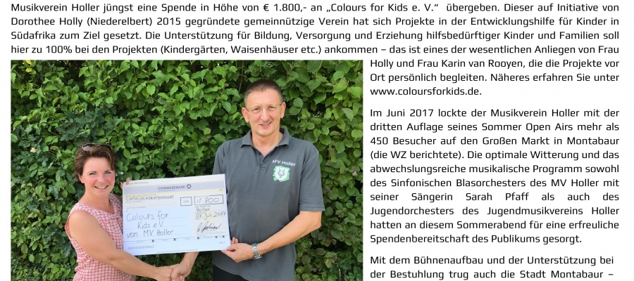 Dafür - und für eure Spenden zugunsten von "Colours for Kids" - sagen wir herzlich Danke.