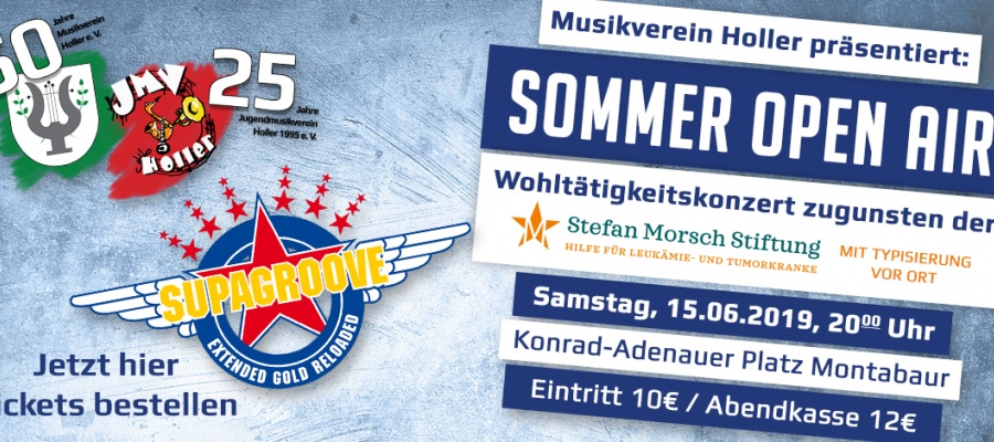 Während der Konrad-Adenauer-Platz in Montabaur heute Mittag schon wieder so aussah, als hätte dort nie eine Großveranstaltung stattgefunden, blicken wir begeistert und dankbar auf unser 5. Sommer Open Air zurück – begeistert, dass so viele Zuhörer unserer Einladung gefolgt sind und das Programm unseres Jugendorchesters, des Musikvereins und Supagroove derart gefeiert haben und dankbar dafür, dass all dies letztlich für einen sehr guten Zweck erfolgen konnte.